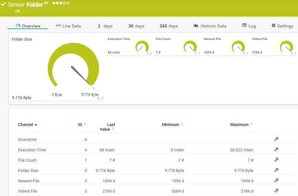 Show warning status if older: Set the sensor to the Warning status if one of the files in the folder is older than a specific limit unit.