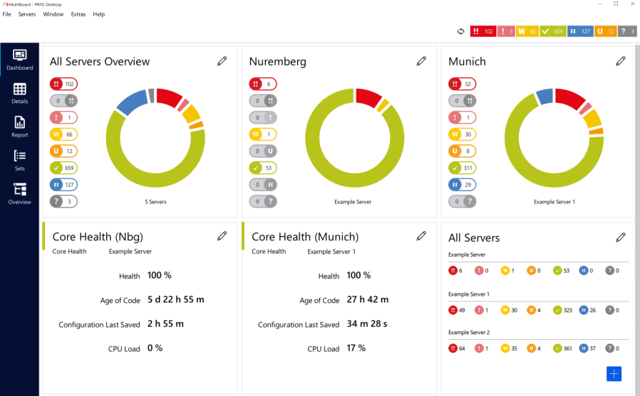 With MultiBoard, you can connect to several independent servers to view their data and manage your monitoring centrally. Within the MultiBoard pages, you can find the following: