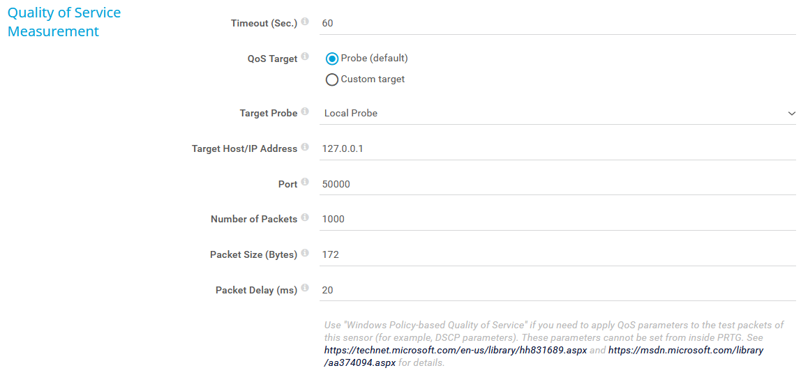 In PRTG Hosted Monitor, you can only select a different remote probe as the target probe. QoS measurements for connections to the hosted probe are not possible.