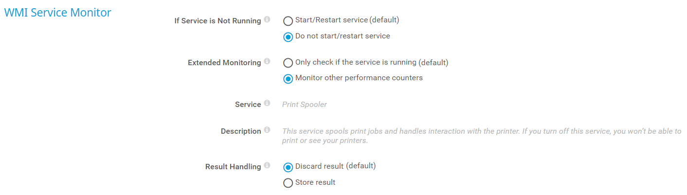 Select whether you want PRTG to start or restart the service if it is stopped or paused: